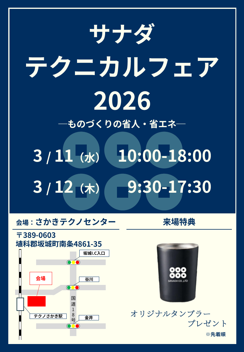 【展示会】サナダテクニカルフェア2026を開催いたします